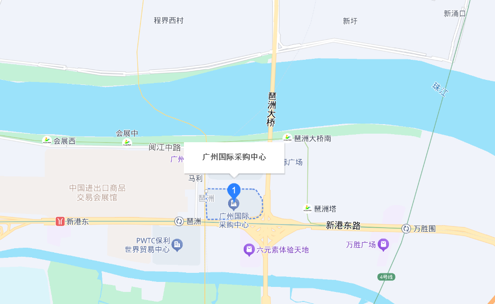 廣州國(guó)際采購(gòu)中心位于廣州市(shì)海(hǎi)珠區(qū)琶洲大(dà)道(dào)東(dōng)2-8号,地(dì)處琶洲會(huì)展商圈核心 位置,周邊交通(tōng)便捷,臨近(jìn)地(dì)鐵(tiě)8号線、11号線琶洲站(zhàn),周邊有(yǒu)華南(nán)快(kuài)速幹線、新港東(dōng)路♥(lù)等主幹道(dào);同時(shí),其緊鄰廣州國(guó)際會(huì)展中心(廣交會(huì)館)、保利世λ貿展館等展館,周邊還(hái)有(yǒu)香格裡(lǐ)拉大(dà)酒店(diàn)等五星級酒店(diàn)及地(dì)鐵(tiě)沿線的(de)大(dà)型商場(chǎng)、影(yǐ×ng)院等商業(yè)娛樂(yuè)設施。